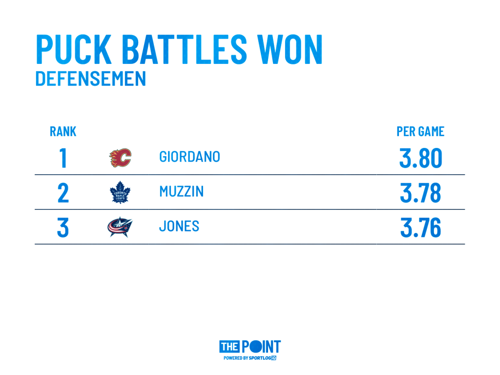 According to data tracked by The Point, Muzzin sits second league-wide in puck battles won/game behind only Mark Giordano in that respect. It’s not surprising if you watch him closely throughout a game. The Leafs really addressed a glaring need head on here as far as a defenseman who can bust up cycles and transition the puck.