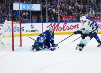 Toronto then gifted Laval a way back into the game. There shouldn’t have been any danger as Toronto had three players in the defensive zone when Ylonen crossed the blue line with two teammates in tow. A lack of communication allowed Ylonen to cruise low into the right circle and rip a powerful shot across Woll and into the corner of the net.
