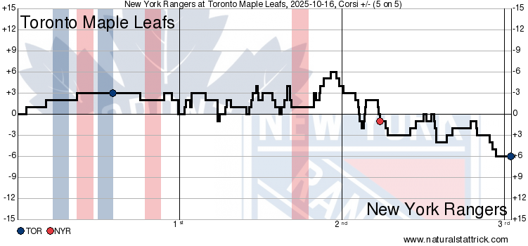 Before the game, Craig Berube remarked that the Rangers looked more like the Leafs in their own zone this season (they’ve shifted from man-to-man to zone defense). Since the start of the new season, new head coach Mike Sullivan has talked at length about his team’s goal of recommitting to defense and limiting rush chances against, after an extremely leaky 2024-25 season under Peter Laviolette.