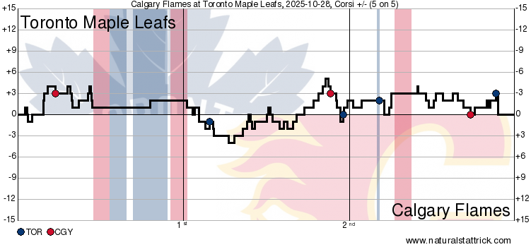 After a sloppy first few minutes, the Flames dictated the opening stages of the game and grabbed an early lead. As has been the case too frequently in the opening 10 games, the Leafs were guilty of leaky rush defense, leading to open seams for the attacking team in Toronto’s defensive zone.