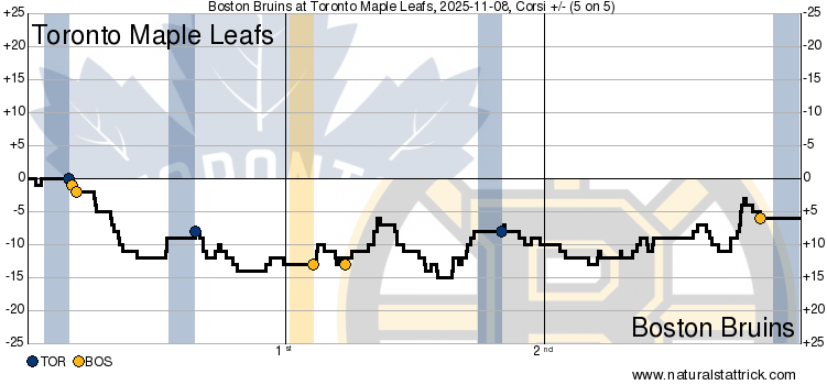 A lot happened over the 60 minutes, but the underlying story is that an undermanned Bruins team outworked a fairly healthy Leafs team, costing Toronto two points.