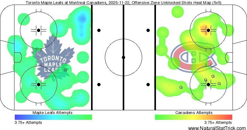 Where Berube lost me is the ill-conceived line changes: Dakota Joshua with Nick Robertson and Max Domi (in what world)? There are two right-handed wingers in the whole lineup, and they’re on the same line (Calle Jarnkrok and William Nylander, with Jarnkrok on the left)? Popping Sammy Blais in for this one makes sense against his hometown/former team, but dropping Jacob Quillan, thereby forcing Steven Lorentz back into the middle and splitting up Lorentz and Scott Laughton to start — the one duo that has been really dependable for the team when healthy — at a time when the lineup is in such flux with injuries?