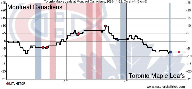 Obviously, the Leafs made a Habs team that had lost five in a row look like world beaters in the second period of this game. Embarrassing is the only way to describe it. It had to be the worst Leafs fans felt watching their team since the first period of Game 7 against Florida, which was similarly completely tilted against the Leafs to an embarrassing degree. While the 2-0 scoreline was a little flattering to Montreal after 20 minutes, the 5-2 final was generous to the Leafs, as score effects set in, and Joseph Woll was the only reason those score effects didn’t kick in with the score at 6-0.