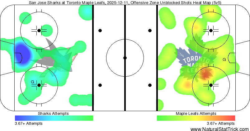 Notably, Easton Cowan finished at just over 10 minutes in ice time. It was worth a look at Cowan-Tavares-Robertson (who conceded the only SJ goal at 5v5), but it seems safe to assume that Berube will return to Nylander next to Tavares once Bobby McMann returns on Saturday. The question is whether Cowan should go back with Tavares-Nylander or if it should be McMann at this point.