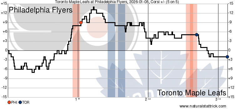 As for the Leafs’ game outside of Laughton’s contributions, this was a fairly low-event battle (before OT), and a mostly 50-50 contest for the majority of the night. It looked like it might’ve gotten away from the Leafs when they took two overlapping penalties in the final 10 minutes of the third while down 1-0. But they stayed composed, got a massive couple of kills, and found a way to win when they weren’t firing on all cylinders, as teams on a roll often do.