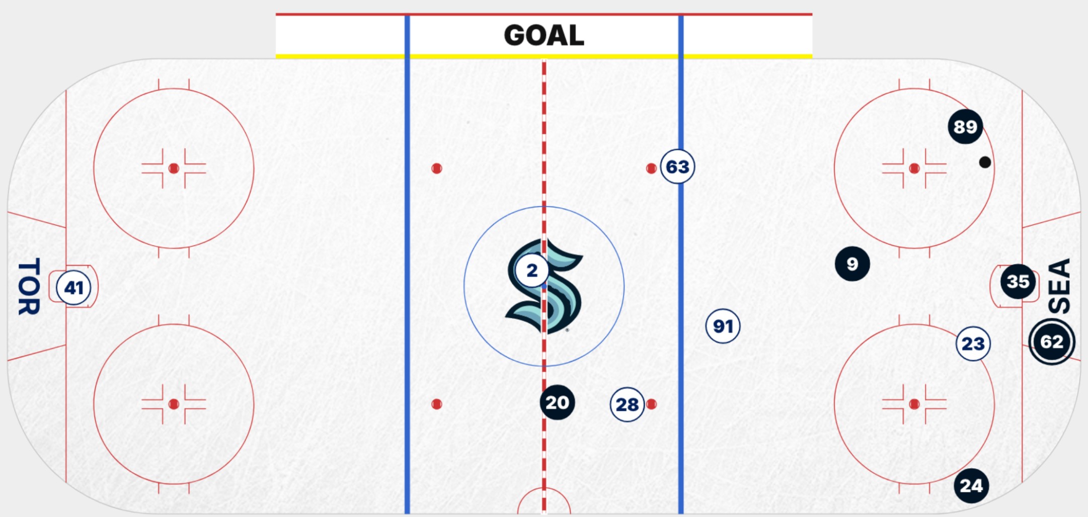 On the next shift, the Leafs gave up another. It summed up why the Leafs struggle defensively, as the neutral zone was an absolute freeway for Seattle. Frederick Gaudreau, who recorded his 15th point of the season in his 47th game, went untouched through the entire neutral zone and crossed the Leafs blue line with speed: