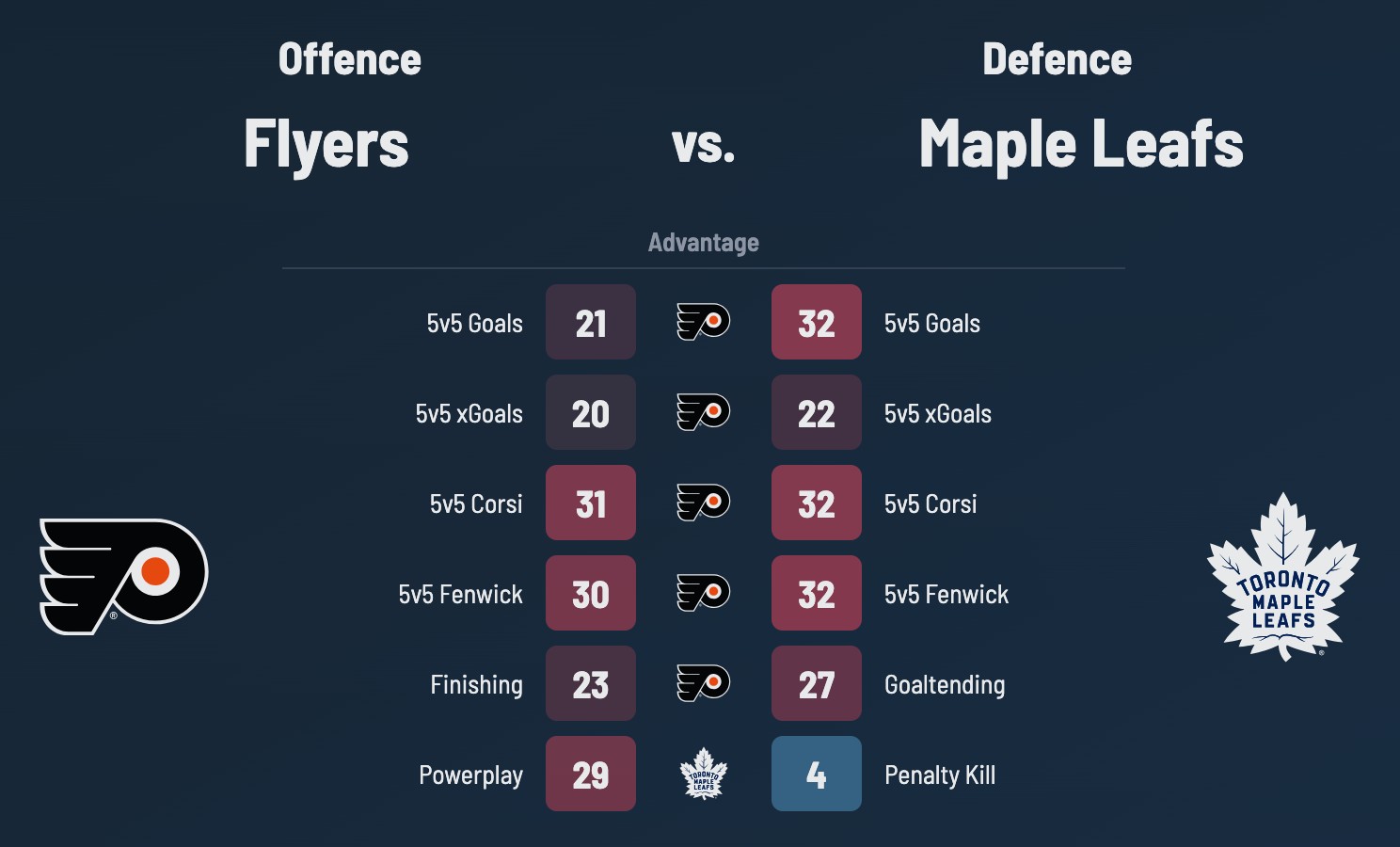 Maple Leafs (27-24-9) vs. Flyers (27-21-11): Head-to-Head Stats