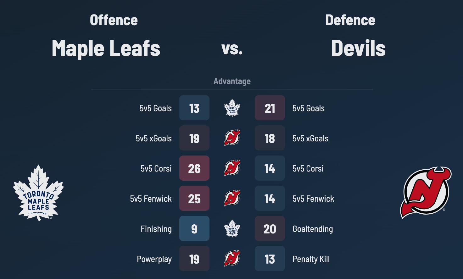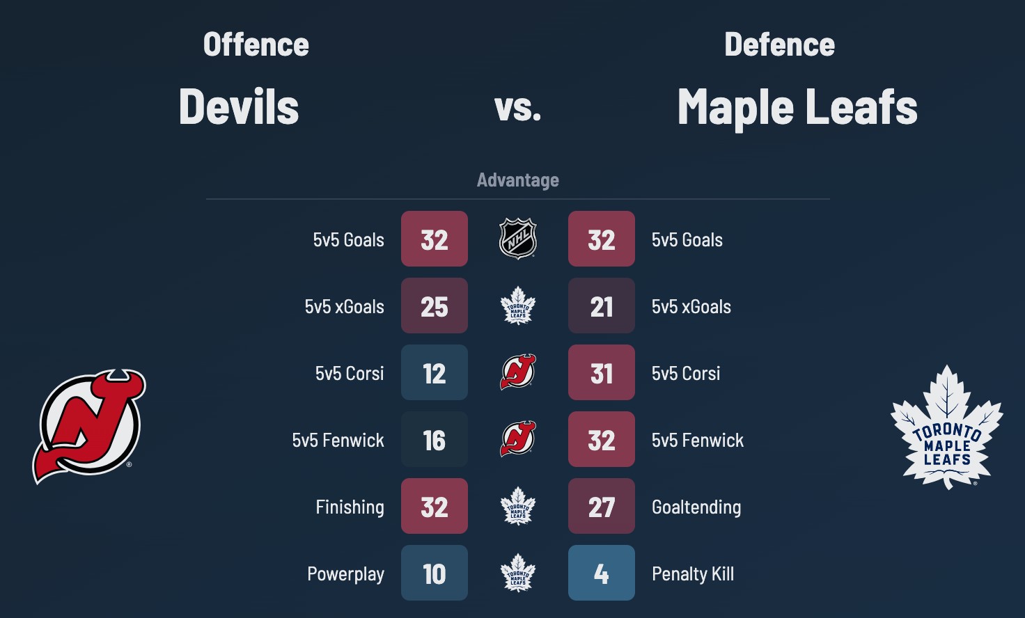 Maple Leafs (27-24-10) vs. Devils (30-29-2): Head-to-Head Stats