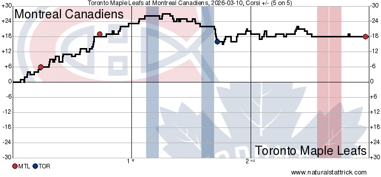 The first period of this game in Montreal is exactly what the remainder of the season should not be about. Even if the goal is tanking, it can be done with dignity and with some lessons and development goals accomplished along the way. There is nothing to be gained from getting 4:1’d in shot attempts and barely touching the puck all period.
